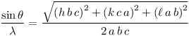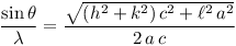 The STLorthorhombic function returns the value Sin(Theta)/Lambda = 1/2.d[hkl] in Å-1 for the reflection [h, k, l] of an orthorhombic system. a, b and c are the lengths of the cell edges in Å. The expression is extracted from the International Tables for Crystallography (Vol. C):