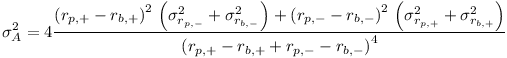 AsymmetrySDev(Rpp, Rbp, Rpm, Rbm, RppSDev, RbpSDev, RpmSDev, RbmSDev)